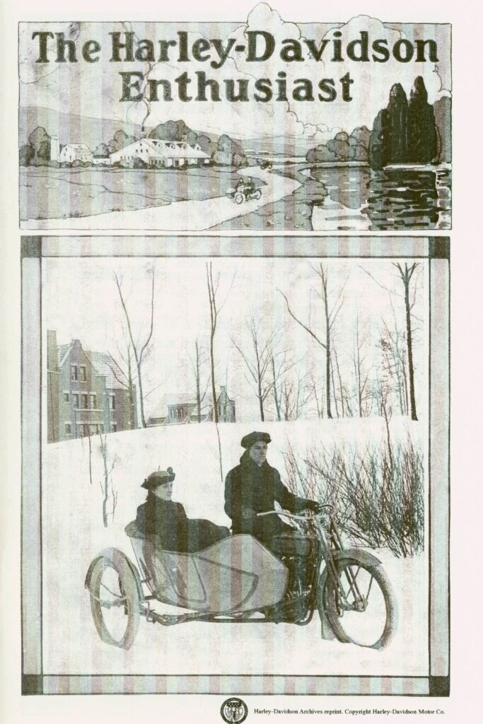 In the summer of 1916, Harley-Davidson launched The Enthusiast. In its introduction, the first edition set the tone: âThe Harley-Davidson Enthusiast is your magazine. It is made up mostly of material that our riders contribute. If you have a good photograph and story, let us take a look at it. Mark plainly on the back of photo what the picture is about.â